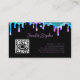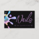 Tarjeta de visita negra con código QR personalizado para técnicos en uñas con esmalte holográfico y salpicaduras