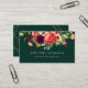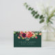 Las flores, las plumas y el follaje bohemios del estilo de la acuarela elegante en sombras elegantes de la púrpura, de Borgoña, del rosa, del melocotón y del verde con acentos geométricos del oro encendido apoyan, las tarjetas de visita. El color de fondo, mostrado en verde esmeralda, puede ser modificado para requisitos particulares.