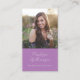 Moderno Minimalista Metafísico Esotétrico Cliente de negocios Gracias Tarjeta en color púrpura claro con plantilla de foto. Dibujo de línea moderna de luna creciente, flores y hojas verdes con escritura cursiva. Texto listo para tu información. Perfecto para masajistas, lectores de tarot, curanderos de energía, terapeutas, curación holística, spa y clínicas, instructores de yoga, reiki y trabajadores de la luz. Elementos de negocio coincidentes disponibles.