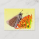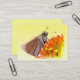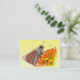 Esta tarjeta de intercambio de artistas presenta una linda mariposa de naranja y color rojizo polinizando una flor de equinácea. El centro de la flor es rojo y dorado. La imagen está atractivamente marcada por un fondo amarillo que se desvanece.