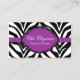 diseños 2010 del miembro de la jet-set del ©. Tarjeta de visita elegante del estampado de animales lista para que usted personalice. El color de fondo blanco se puede cambiar así como la fuente. El papel con membrete a juego así como el otro estampado de zebra diseña y los productos están disponibles.