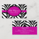 diseños 2010 del miembro de la jet-set del ©. Tarjeta de visita elegante del estampado de animales lista para que usted personalice. El color de fondo blanco se puede cambiar así como la fuente. El papel con membrete a juego así como el otro estampado de zebra diseña y los productos están disponibles.