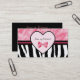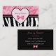 Tarjeta De Visita Estampado de zebra rosado y negro de moda con la