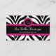 Tarjeta De Visita Estampado de zebra y monograma rosado del cordón