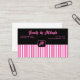 Las rayas verticales rosas y blancas en el fondo, con un bloque de color negro en la parte superior, y una pequeña caja para tu marca, hacen una hermosa tarjeta de visita para un esteticista o dueño de un salón de belleza. La parte trasera es blanca, con espacio para citas o recompensas a los clientes.