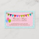 diseños 2014 del miembro de la jet-set del ©. Nuestras tarjetas de visita elegantes el diseñar y del diseño del acontecimiento tienen un ajuste de la tabla con el tarro, la torta, el globo y la lámpara del caramelo. El fondo tiene un modelo del damasco y de la raya en la aguamarina ligera azul. Personalice esta tarjeta de visita elegante del planificador de eventos con su información.