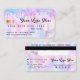 Purpurina holográfico Rainbow Dripping en una tarjeta de visita con estilo tarjeta de crédito que puede utilizarse como tarjeta de fidelización VIP, tarjeta de descuento o tarjeta de visita. Personalizable completo.