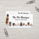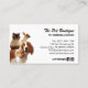 Dé a su negocio de cuidado de mascotas una primera impresión adorable con este Mascota Grooming & Sitter Boutique Business Card! Con un diseño de cachorros lúdico y elegantes tipos de letra, esta tarjeta es perfecta para criadores de perros, mascotas, caminantes de perros o cualquier persona en la industria del cuidado de mascotas. La disposición, suave y elegante, da a los clientes un toque de encanto, como ocurre con los amigos de los peludos. Personalice con su nombre de negocio, información de contacto y etiqueta para un aspecto profesional y accesible. Ya sea que los entregues en tu salón de compras o que dejes una pila en una tienda de mascotas, estas tarjetas seguramente serán recordadas. ¿Buscando otros estilos de tarjeta de visita para mascotas? ¡Mira nuestra colección completa!