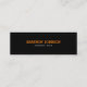 Tarjeta de visita flaca. Diseño estrecho, mínimo y básico del texto anaranjado y gris claro (personalizable a cualquier color usted deseo) en fondo negro. Tarjeta delgada del personalizado, simple y limpia mini de visita.