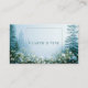 Define your brand with pristine clarity and serene elegance using this captivating business card. The design transports you to a breathtaking misty forest landscape where tall, dark pine trees emerge from a thick, ethereal, blue-gray fog that dominates the center. The foreground is beautifully anchored by an abundant border of vibrant white wildflowers and small blossoms, creating a stunning contrast with the cool, shadowy woods. A thin, elegant metallic gold rectangular frame sits centrally, providing a clean, bright window for your essential information. This artwork beautifully captures the quiet solitude and natural beauty of a hidden woodland scene, resulting in a unique and sophisticated brand statement. This business card is ideally suited for a botanical artist specializing in naturalistic illustrations, a nature-focused wellness coach or resort emphasizing tranquility, or a modern floral designer specializing in delicate, white arrangements. It would also perfectly suit a luxury candle maker whose products evoke crisp pine and wild floral scents, or a fine art print seller focused on serene, atmospheric nature scenes.