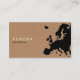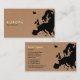 Una tarjeta de visita con un mapa de Europa. Información de la empresa en la parte delantera con nombre y datos de contacto en la parte posterior con el mismo motivo de mapa europeo.