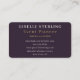Professional business card designed for event planners using a rich purple color palette. The layout keeps contact details clear and easy to read while presenting a polished, modern, and planning focused appearance. Suitable for event planners, coordinators, and special event professionals. Fully customizable text with a print-ready layout.