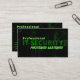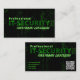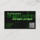 La tarjeta de visita favorita IT-Security para expertos profesionales en ciberdelitos y ciberseguridad con un elegante fondo de matriz verde que muestra el texto "Professional IT-Security" para especialistas reales en tecnología de la información. Elegante plantilla de tarjeta de visita premium personalizada para usted y sus servicios en torno al aura digital de ciberdelito, protección de datos, seguridad de internet, protección de identidad y análisis de fraude y sistemas de cortafuegos. Muestre su experiencia en servicios de tecnología de la información con estas tarjetas de negocios de TI-Seguridad, si es un experto profesional en informática especializado en ciberseguridad. Eche un vistazo a esta plantilla de tarjeta de visita Premium de personalizable y personalice el texto, el estilo, los colores y los tamaños para que se ajusten a sus necesidades. Si tienes una pregunta de diseño o quieres ver este diseño en otro producto, por favor, no dudes en contactarme!