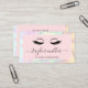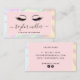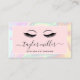 Magníficas extensiones de pestañas diseño de tarjetas de negocios con colorida textura holográfica falsa, bloque de color rosa y elegante fuente caligráfica.