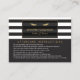 Coordina con las pestañas doradas con la plantilla de la tarjeta de presentación de franjas blancas y negras antes de las 12.01 horas. Un audaz fondo rayado en blanco y negro crea interés visual en esta tarjeta de postcuidado del salón de extensiones de personalizable. © 1201AM CREATIVE