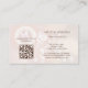 Este diseño de tarjeta de visita elegante y de ensueño presenta una mariposa brillante rodeada de delicados acentos florales blancos sobre un suave fondo de melocotón. Es perfecto para cualquiera que quiera transmitir un sentido de calma, cuidado y belleza a través de su marca. El anverso muestra claramente el nombre y la profesión, mientras que el reverso incluye espacio para un código QR y detalles de contacto, lo que lo hace hermoso y funcional. Perfecto para profesiones tales como: - Sanador holístico - practicante de Reiki - Terapia de masajes - Entrenador de vida - Entrenador de bienestar - Planificador de eventos - Dula o entrenador de natalidad - Diseñador interno - Profesor de meditación - Especialista en esteticista o en cuidado de la piel - Instructor de yoga - Salón de belleza