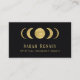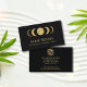 Fases lunares en una textura dorada. Nombre y texto en tonos dorados coincidentes. En la parte de atrás, un bello centavo dorado rodea una celestial luna llena. Personalizar con los detalles e información de su negocio.