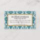 NOTA: Este es un diseño impreso plano. No hay purpurina real, metalizado de oro ni capas elevadas. PALETTE DE COLOR: azul verde azulado, dorado y blanco suave color turquesa y purpurinoso. RECOPILACIÓN DE DISEÑO: Las tarjetas de visita, los titulares de tarjetas y los artículos de papelería adicionales que coincidan son perfectos para uso personal o para profesionales y empresas. Diseño gráfico de Audrey Jeanne Roberts, esta imagen de adamascado de estilo moderno y vintage con un diseño floral decorativo tiene un toque de purpurina a la moda. El marco es un patrón de desplazamiento y punto con una influencia Art Nouveau o Art Déco. Los elementos florales de enlucido estilísticamente de las damasquetas se colocan sobre un color de fondo blanco cremoso. Un marco de estilo de corchete tiene puntos de polka y un borde de tipo giratorio de caligrafía. Con este patrón hay una amplia gama de combinaciones de colores disponibles.