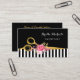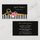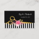 Tarjeta De Visita Faux Gold Scissors Stripes Pink Floral Hair Salon