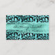 Relieve metalizado verde azulado turquesa falso y punto de leopardo negro con pinceladas de broche de Relieve metalizado de purpurina acuático en el centro para tu nombre. Diseño de safari moderno para su pequeña empresa. Tarjetas de visita con gafas cianas, verde azuladas, turquesas, negras y pálidas.