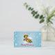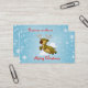 Una linda imagen personalizado de un adorable reno navidad volando en el cielo con copos de nieve y nubes en el fondo. Feliz diseño de tarjetas de negocios navideñas.