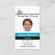 Custom matching business card for a Female Pastor, although it can be customized for any church emloyee. Each part of this business card can be modified to suit your needs. The name of the church, the staff member's photo, the title of the person and the address, phone number and email can all be customized. There is also a space on the back to add a custom favorite scripture quote (or the text on the back can be removed entirely).