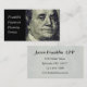 Cierre del retrato de Benjamin Franklin. Gran tarjeta de negocios icónica para todo tipo de profesiones financieras, incluyendo banca, inversiones y planificación financiera.