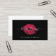 El diseño moderno de la moda presenta un rico fondo negro con un vibrante beso de tinta rosada. Agregue dos líneas de texto personalizado al frente, con su nombre o nombre de negocio en escritura manuscrita de moda, y personalizar la parte posterior con sus detalles de contacto completos. Perfecto para maquilladores, esteticistas, distribuidores de color de labios o cualquier profesional de la industria de la belleza.