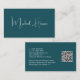 Tarjeta profesional minimalista moderna de color esmeralda con su nombre en un guión elegante de firma blanca en la parte delantera y su información (por ejemplo, correo electrónico, números de teléfono, nombre de firma y dirección) en tipografía blanca limpia y simple en la parte posterior. Agregue la dirección URL de su sitio web para crear un código QR escaneado.