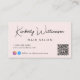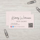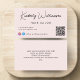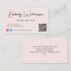 tarjeta de visita rosa claro de moda con su nombre o marca mostrada en un guión elegante de firma y tipo de negocio con letras sencillas y modernas. Ingresa la dirección URL de tu sitio web para crear un código QR para que clientes y clientes busquen una lista de tus productos, servicios, horas, etc., y agrega tus datos de usuario de instagram y facebook para que los clientes te sigan en las redes sociales. Puede agregar información adicional en la parte posterior o dejar en blanco.