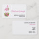 Tarjetas de visita con un flamingo de Navidades tropicales con un sombrero de santa rosa. Bajo sus pies, se encuentra un ramo de caña de caramelos con flores tropicales de bonito y bayas rosas. Un brote de holly en el pecho.