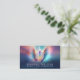 Esta impresionante tarjeta de visita de Reiki presenta un diseño celestial con alas de ángel radiantes que abrazan el símbolo sagrado de la Flor de la Vida, realzado por una vibrante exhibición de chakras brillantes. El fondo cósmico de púrpuras, azules y rosados etéreos emana una sensación de serenidad y conexión divina, lo que la hace perfecta para Maestros de Reiki, practicantes de bienestar holístico y sanadores energéticos. Esta tarjeta transmite una mezcla armoniosa de espiritualidad, energía curativa y elegancia profesional.
