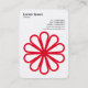 Una plantilla de tarjeta de visita con motivos de flor geométrica. Nombre de la empresa, tipo de negocio y dirección en la parte delantera con nombre, cargo, telefonía, dirección web y correo electrónico en la parte posterior, con el mismo diseño.