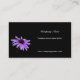 flor de margarita morada en fondo negro tarjeta de visita personal, para naturaleza, vivero, floristería, tienda de regalos, escuela, profesor, artista, fotógrafo, etc.