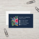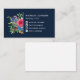 tarjeta de visita floral de bonito blanca con un ramo de flores rosadas, rojas, azules, violetas y naranjas, vegetación y bayas en azul oscuro. Agregue sus identificadores de medios sociales junto a iconos blancos.