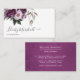 Tarjetas de visita con acuarela pintadas a mano con flores de color violeta y ciruela con elegante tipografía de escritura a mano.