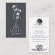 Make a refined and unforgettable first impression with our elegant, modern, and luxurious fashion business card design. The front of the card features our exclusive hand-drawn illustration of a fashion dress form mannequin adorned with hand-painted watercolor flowers, creating a chic, artistic, and sophisticated look. All illustrations are finished with delicate details and set against a blue-gray background, which can be customized to perfectly match your fashion branding. Personalize the front with your name or replace it with your logo to beautifully showcase your fashion brand. The reverse side features a clean, stylish layout for your contact details, including a circular photo frame for your professional portrait and space for a QR code—ideal for linking to your website, online booking page, or social media profiles. Perfect for fashion designers, stylists, and boutique fashion studios, this design blends creativity, elegance, and professionalism, leaving a high-end impression on every client. Design and illustration by ©Moodthology Papery.