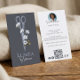Make a refined and unforgettable first impression with our elegant, modern, and luxurious hair salon business card design. The front of the card features our exclusive hand-drawn illustration of a stylish pair of scissors adorned with hand-painted watercolor flowers, creating a chic, artistic, and sophisticated look. All illustrations are finished with delicate details and set against a blue-gray background, which can be customized to perfectly match your salon branding. Personalize the front with your name or replace it with your logo to beautifully showcase your hair or beauty business. The reverse side features a clean, stylish layout for your contact details, including a circular photo frame for your professional portrait and space for a QR code—ideal for linking to your website, online booking page, or social media profiles. Perfect for hairstylists, salon owners, and beauty professionals, this design blends creativity, elegance, and professionalism, leaving a high-end impression on every client. Design and illustration by ©Moodthology Papery.
