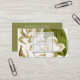 Magnolias blancas con hojas de tarjeta de visita floral con una rama de magnolia de flores en un delicado centro de tintes blancos con una elegante tipografía de serif. Personalizar al revés. Un formato único de tarjeta de visita cuadrada añade un toque de individualidad. Una tarjeta adecuada para muchas profesiones. Florista, consultora de gestión, jardinero, estilista u otra profesión que requiera una imagen floral elegante. Adecuado para una florista, planificadora de bodas, jardinero o arreglista floral.