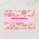 Haga una primera impresión vibrante e inolvidable con esta elegante tarjeta de visita retro. Retroceda a la diversión y el funk de los años 70 con un diseño que rebosa de personalidad. Con un alegre patrón de flores mugrientas, alegres arcos, hongos caprichosos y signos clásicos de paz, esta carta se encuentra en un alegre fondo rosado. La tipografía rosa intenso y audaz de tu nombre crea un contraste moderno y llamativo, asegurando que seas recordado fácilmente.