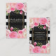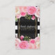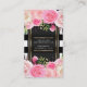 Tarjeta De Visita Flores Acuarela Rosadas Rayas Blancas y Negras Ele