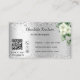 Tarjeta De Visita Flores blancas plateadas código QR del monograma e