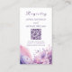 Comparte los detalles de tu registro y de tu fondo de luna de miel con esta tarjeta de doble cara, elegantemente diseñada en tonos rosa, púrpura y azul con delicados acentos de flor de cerezo. Con un cómodo código QR, sus huéspedes pueden conectarse fácilmente a su registro y contribuir a su fondo de luna de miel en línea. Explore nuestra colección completa para crear una experiencia boda temática coherente e inolvidable.