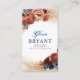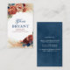 Naranja, terracota, flores azules de la marina y tarjeta de visita de pampas