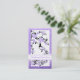 Negro, violeta pavo real y flores de cerezo diseño de tarjeta de visita personalizado, con una silueta negra y lavanda púrpura de un ave pavo real y una rama de cerezo -árbol sakura- con hermosas flores con efecto de textura derrumbada metálica sobre fondo blanco y un borde negro alrededor de ella. Un diseño elegante y floral con un toque asiático oriental. Este diseño jovial es totalmente personalizable. Ideal para uso personal o profesional.