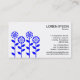 Una plantilla de tarjeta de visita con un atractivo motivo de flores geométricas. Nombre de la empresa y tipo de negocio en la parte delantera, con el nombre y otros datos de contacto en la parte inversa. El diseño se puede personalizar de diversas maneras.