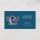 Tarjeta de visita horizontal. Diseño metafísico con hermosa acuarela de un cuervo magickal, flores púrpura, cristales azules y corona toro con estrellas. Este diseño es perfecto para curanderos holísticos, terapeutas de masaje, practicantes de reiki, instructores de yoga y cualquier persona en el negocio espiritual y metafísico. Añada un toque mágico a su negocio, clínica o spa. Artículos de negocios para tu negocio espiritual disponibles en nuestra tienda Zazzle.
