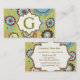 Flores retro curas turquesa estampado floral azul turquesa personalizado monograma tarjetas de visita, con un bonito patrón de flores abstractas en azul turquesa con contorno marrón sobre fondo verde oliva y tu monograma en un marco de marfil. Cambie el texto para personalizarlo y agregue su nombre o su empresa. Un diseño floral femenino, jovial, con un toque vintage.
