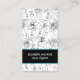 Las tarjetas de visita con acento turquesa cuentan con un boceto de flores y caras y tus detalles en el frente con tu dirección, teléfono e iconos en los medios sociales en la parte trasera. Personalice esta tarjeta de visita para que sea la suya única. MÁS colores y estilos en nuestra colección.
