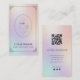 Eleva tu marca con esta tarjeta de presentación de negocio de floristería holográfica de lujo y estudio de bienestar que presenta arte de línea minimalista elegante y un diseño moderno de código QR. El gradiente pastel iridiscente suave crea una estética femenina, de alta gama y boutique perfecta para emprendedores creativos.